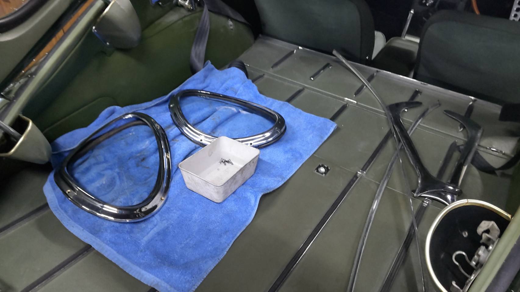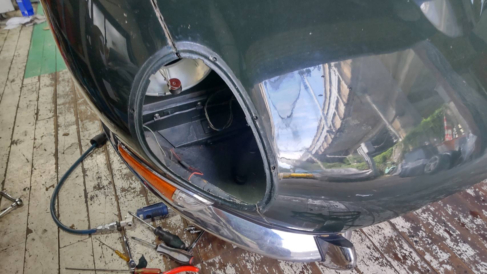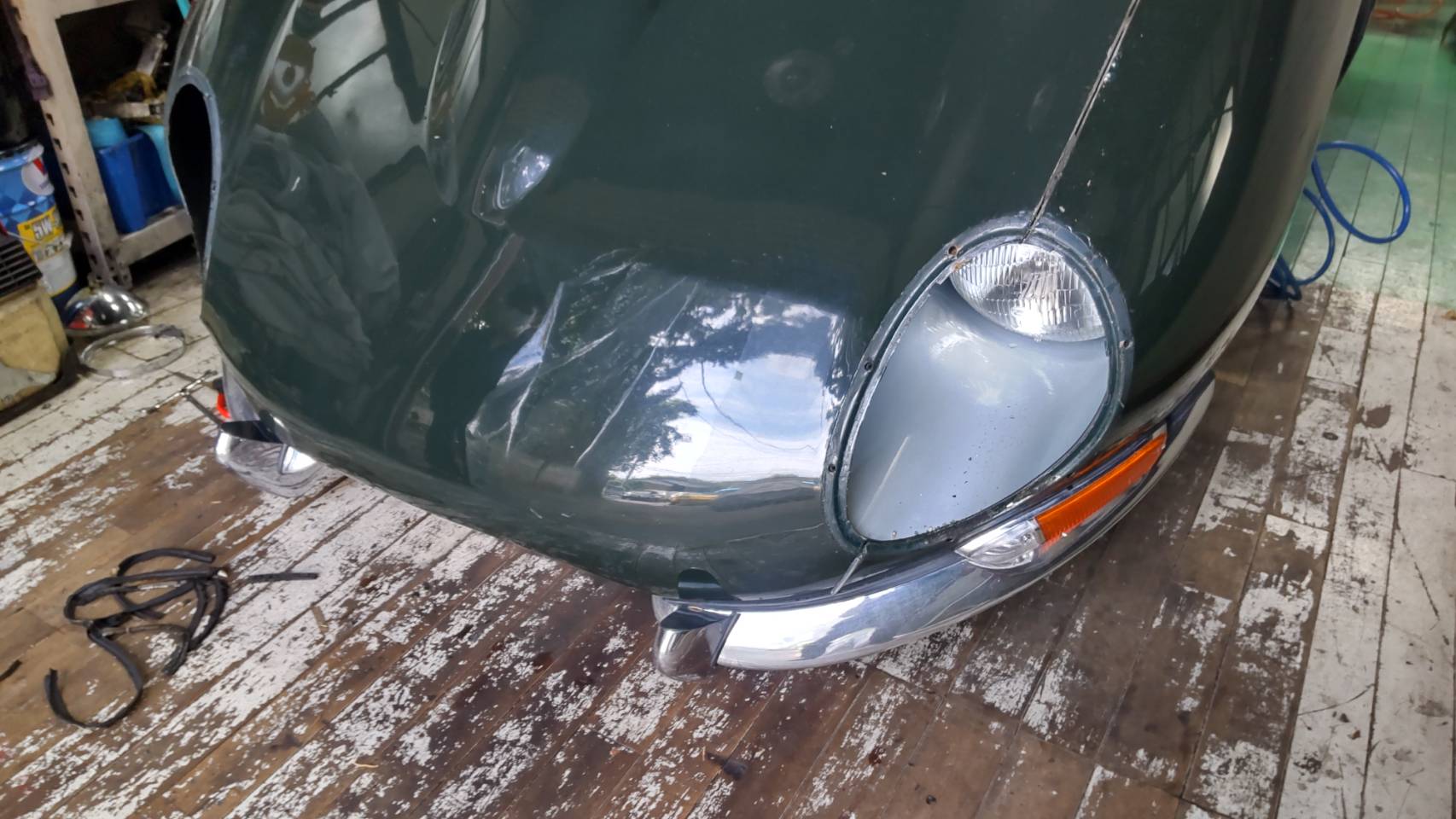 ボンネット&バルクヘッドを鈑金塗装いたしますため
