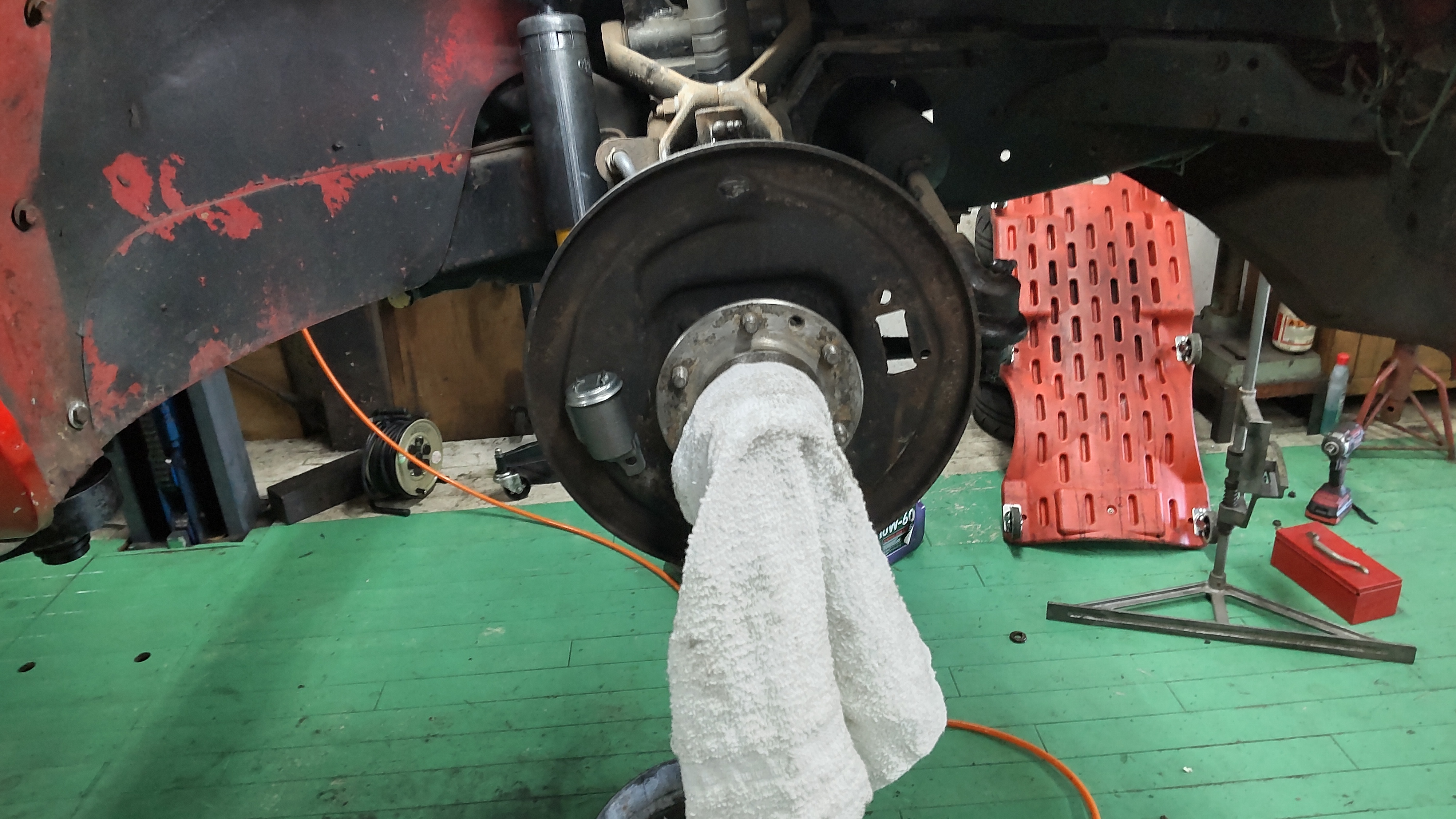 初期タイプは、ドラムブレーキ&シリンダーが片側に左右つきます。