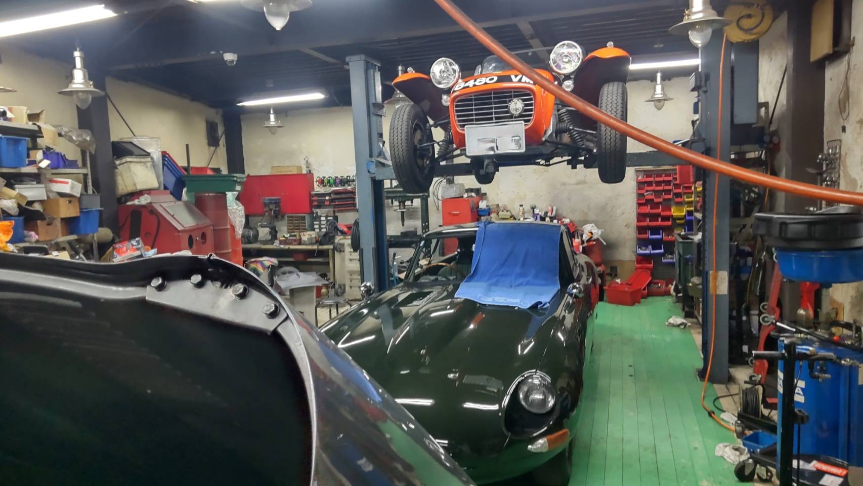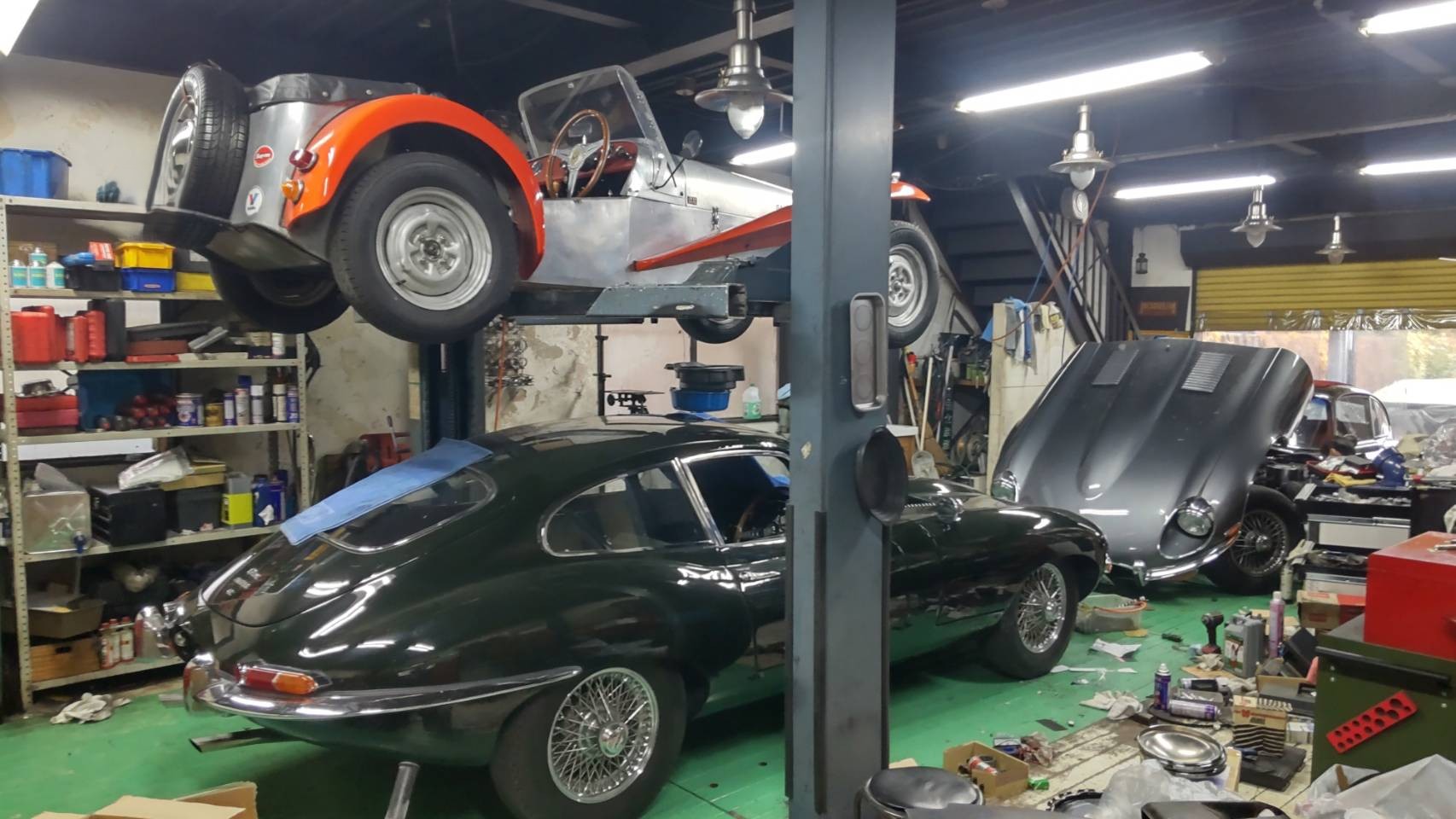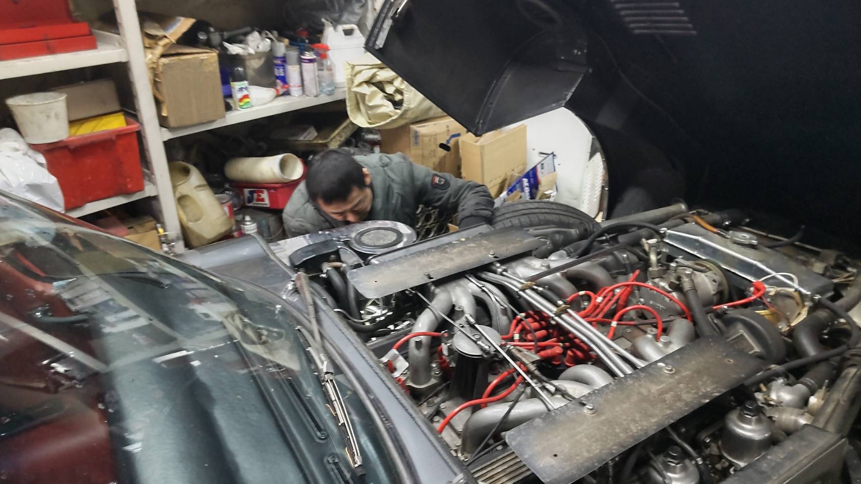 左側の電動ファンを取り付け作業のH様の御愛車JAGUAR E-TYPE V12
