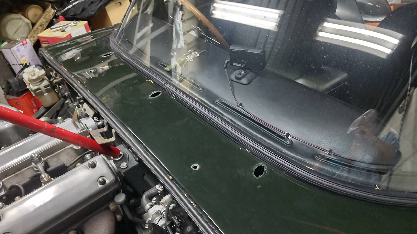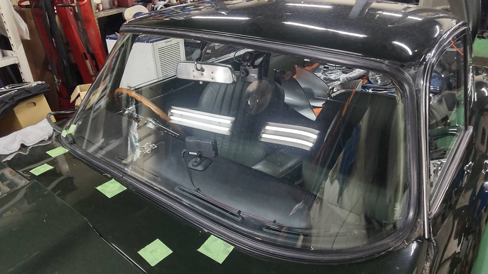 バルクヘッドも塗装いたしますためワイパーアーム、ウオッシャージェットを取り外し