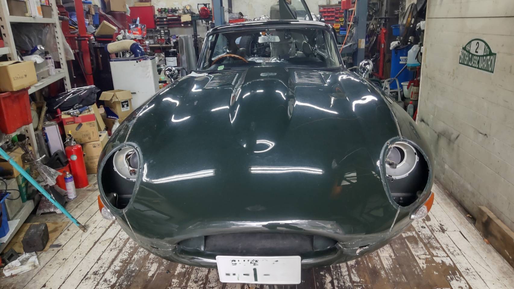 全ての外装パーツのお外し作業が完了いたしましたA様の御愛車 JAGUAR E-TYPE