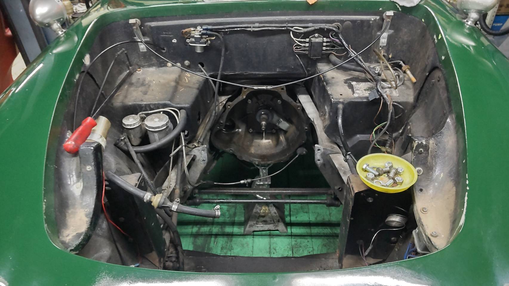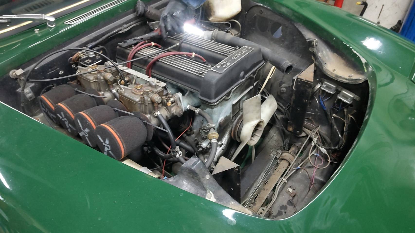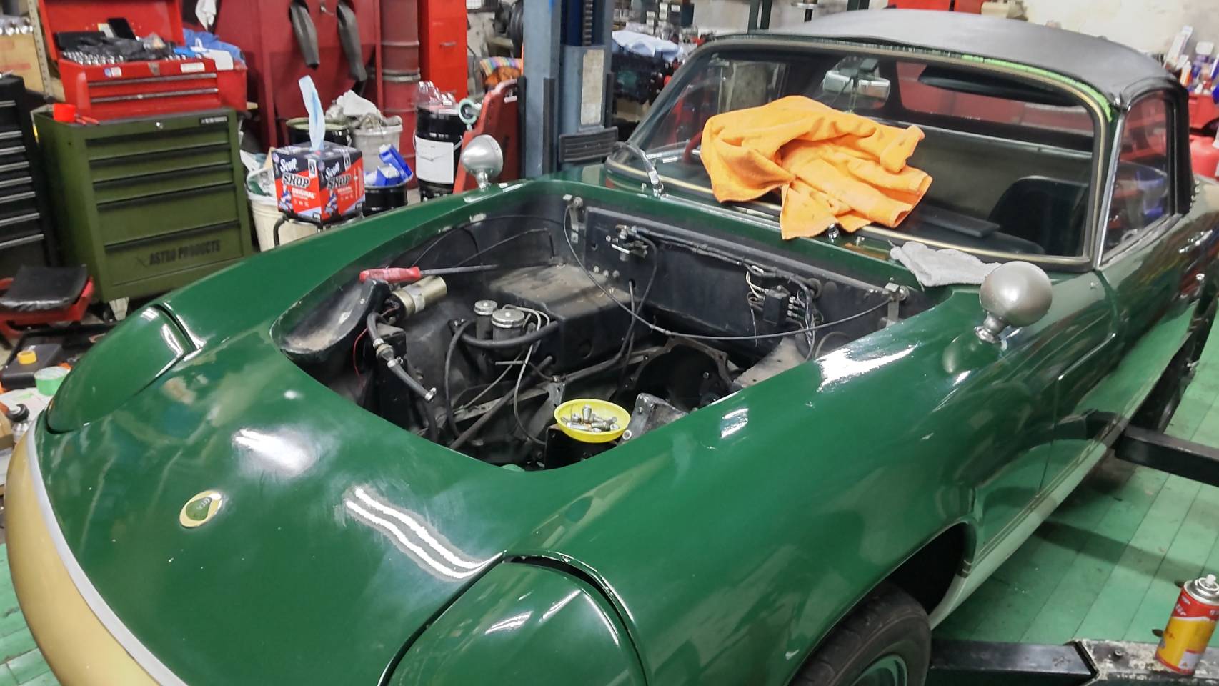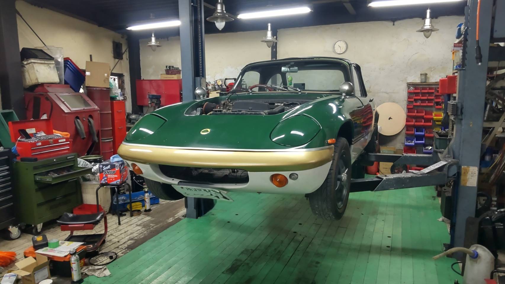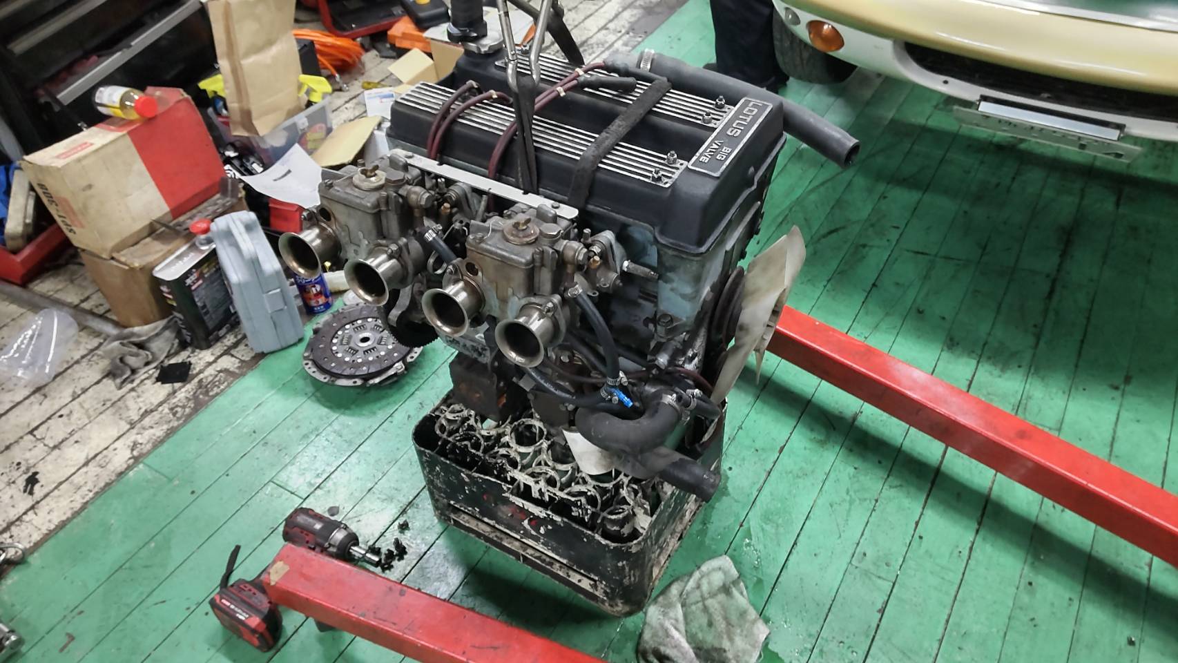 エンジンを降ろしましてクラッチ交換をいたしますS様の御愛車Lotus elan