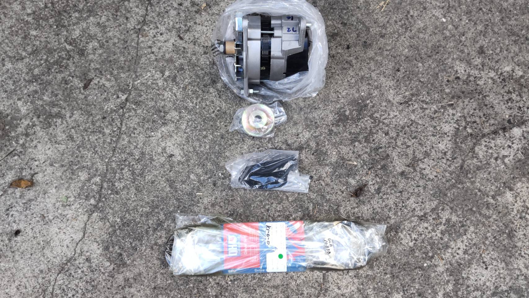 オルタネーターにオルタネータープーリーそして取り付けブラケットにファンベルト