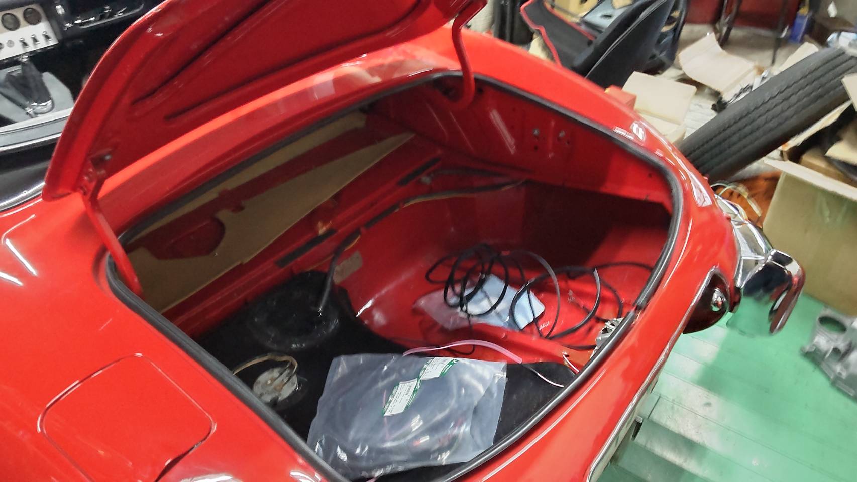 Romeoのタイヤ交換作業とE-TYPEのハーネス交換作業